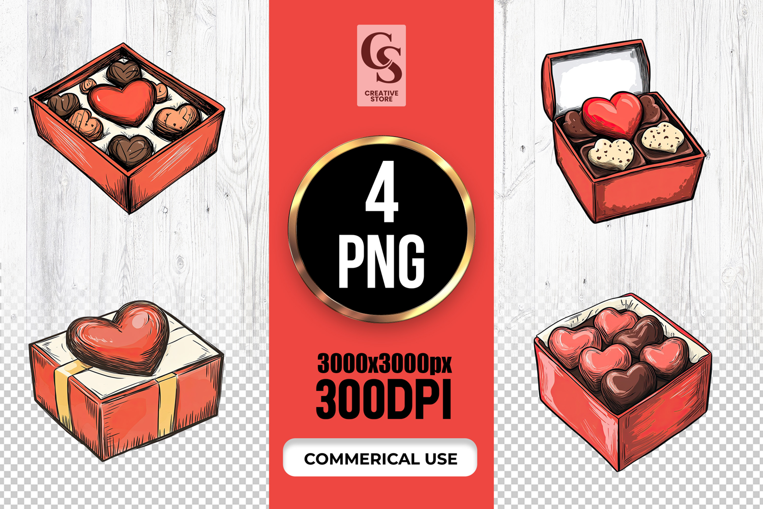 4 Heart Chocolate Gift Box Clipart Sublimation PNG Files Perfect for Greeting Cards, Invitations, Junk Journal, Party Decor, Scrapbooking and many other craft projects.