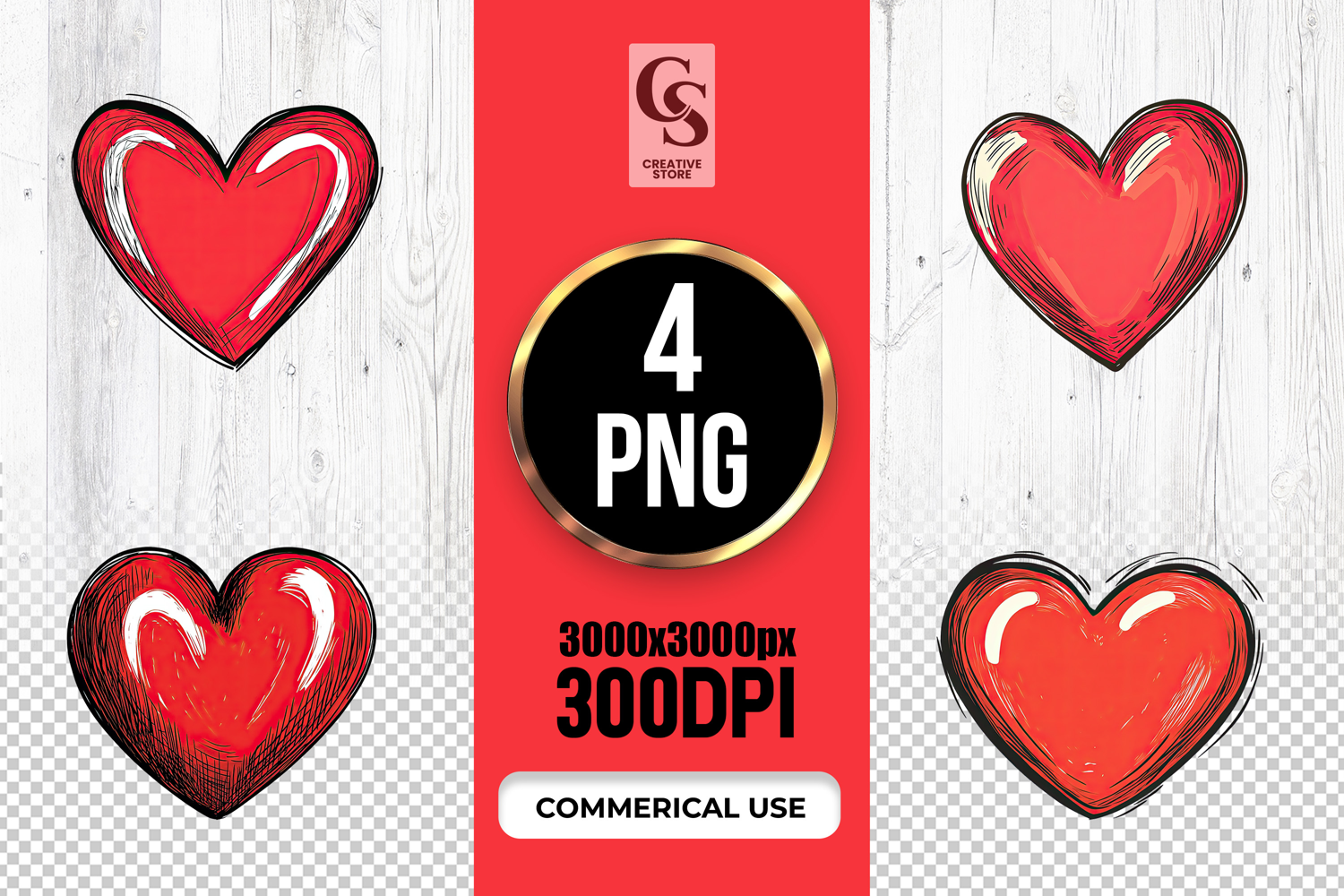 4 Red Hand Drawn Heart Clipart Sublimation PNG Files Perfect for Greeting Cards, Invitations, Junk Journal, Party Decor, Scrapbooking and many other craft projects.