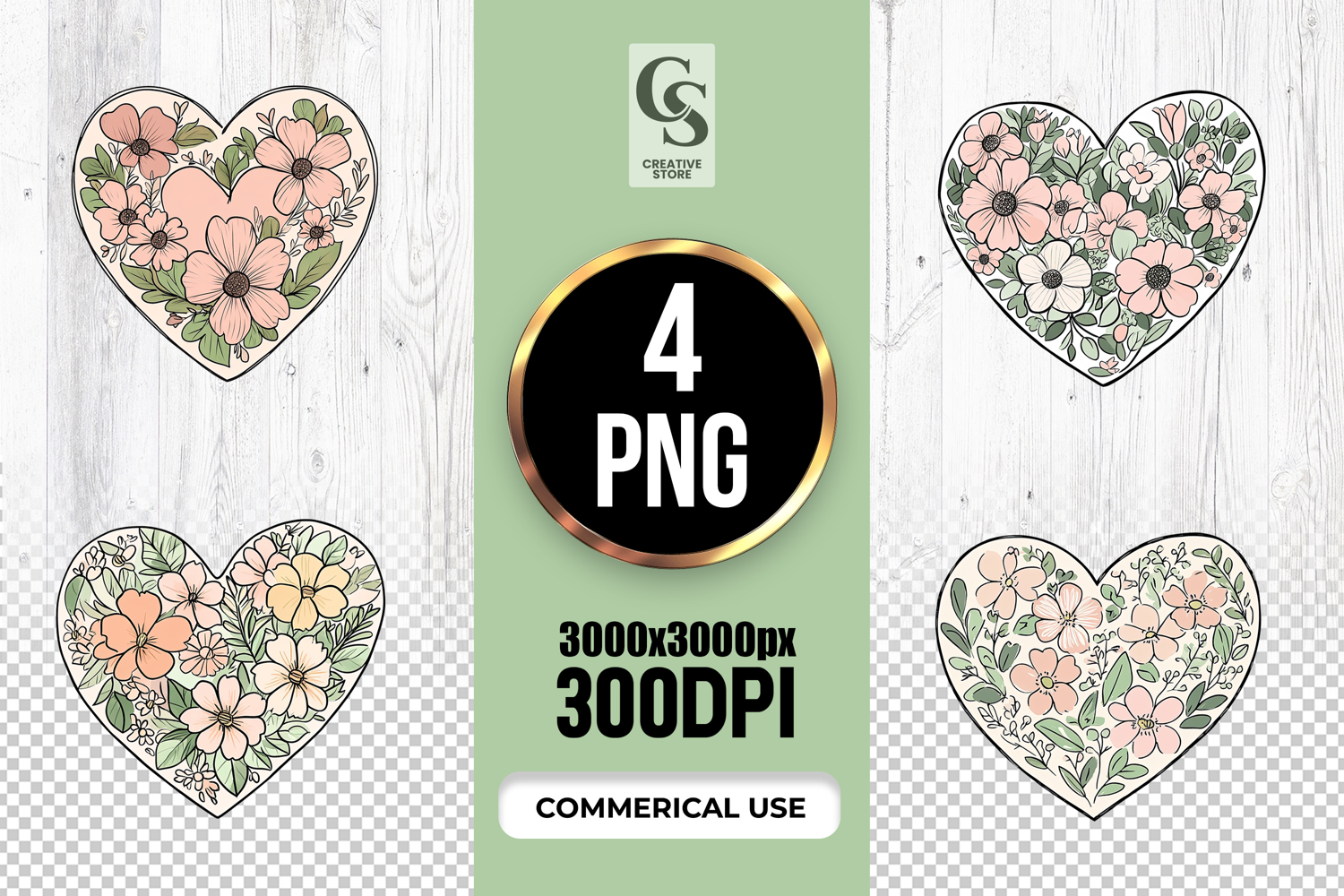 4 Pastel Botanical Floral Heart Clipart Sublation PNG Files Perfect for Greeting Cards, Invitations, Junk Journal, Party Decor, Scrapbooking and many other craft projects.