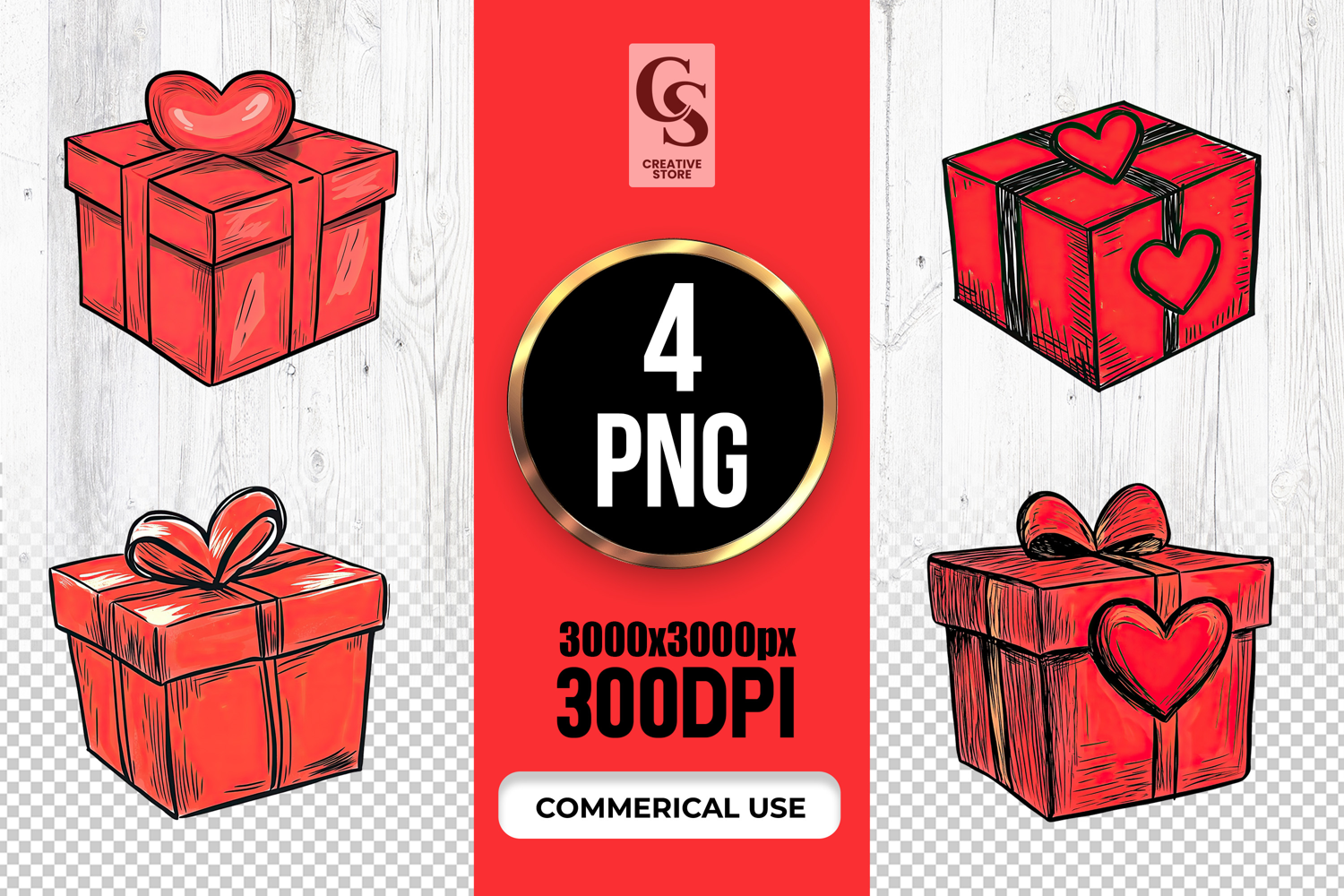 4 Heart Gift Box Clipart Sublimation PNG Files Perfect for Greeting Cards, Invitations, Junk Journal, Party Decor, Scrapbooking and many other craft projects.