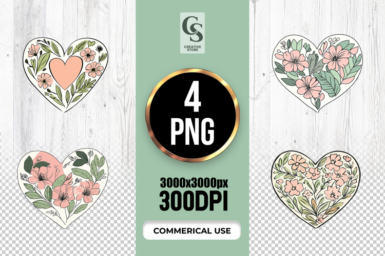 4 Floral Botanical Heart Bookmark Sublimation Files Perfect for Greeting Cards, Invitations, Junk Journal, Party Decor, Scrapbooking and many other craft projects.