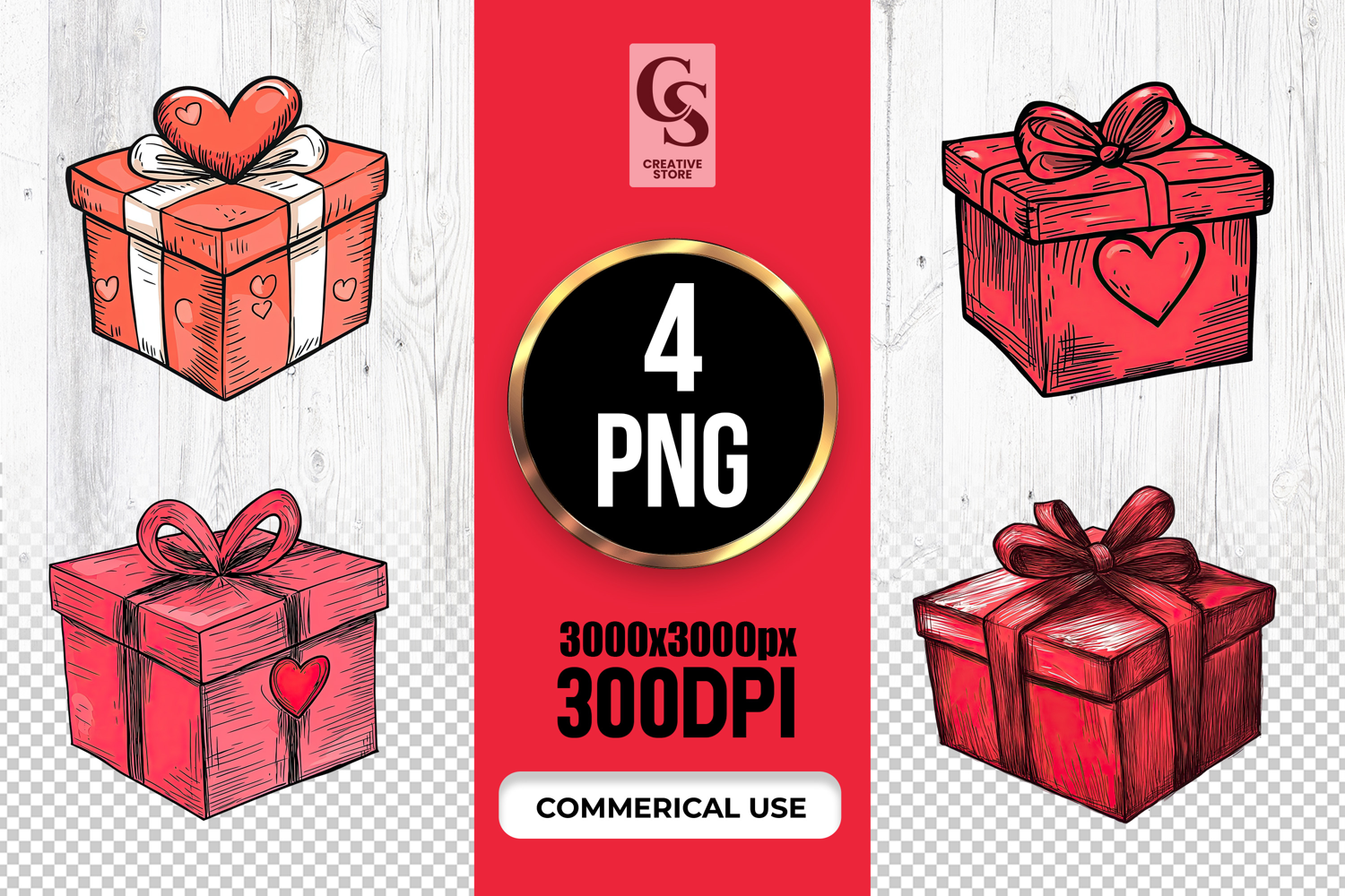 4 Heart Gift Box Clipart Sublimation PNG Files Perfect for Greeting Cards, Invitations, Junk Journal, Party Decor, Scrapbooking and many other craft projects.