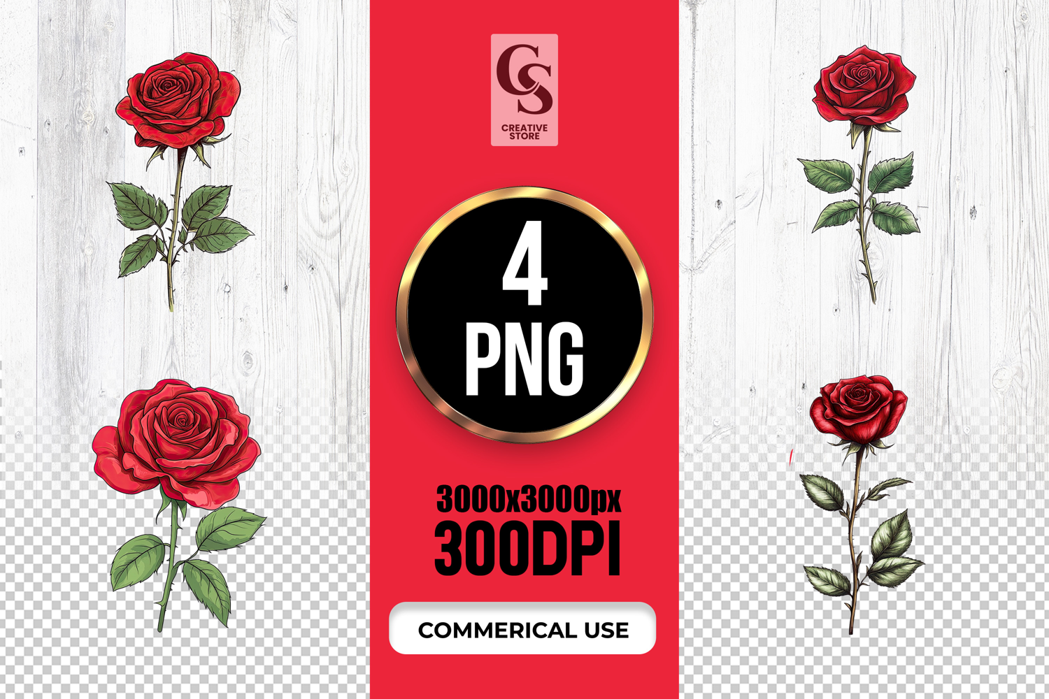 4 Vintage Red Rose Clipart Sublimation PNG Files Perfect for Greeting Cards, Invitations, Junk Journal, Party Decor, Scrapbooking and many other craft projects.