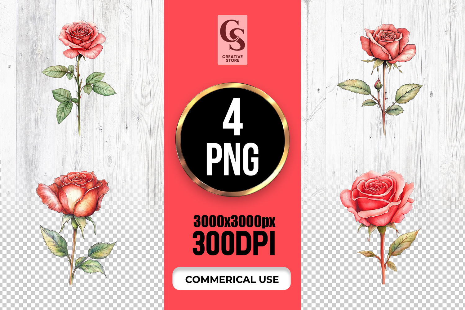 4 Pink Rose Flower Clipart Sublimation PNG Files Perfect for Greeting Cards, Invitations, Junk Journal, Party Decor, Scrapbooking and many other craft projects.