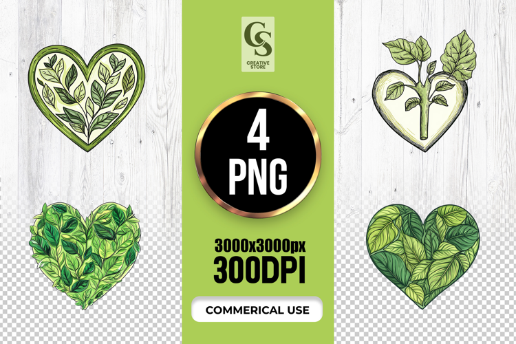 4 Leafy Green Heart Clipart Sublimation PNG Files Perfect for Greeting Cards, Invitations, Junk Journal, Party Decor, Scrapbooking and many other craft projects.