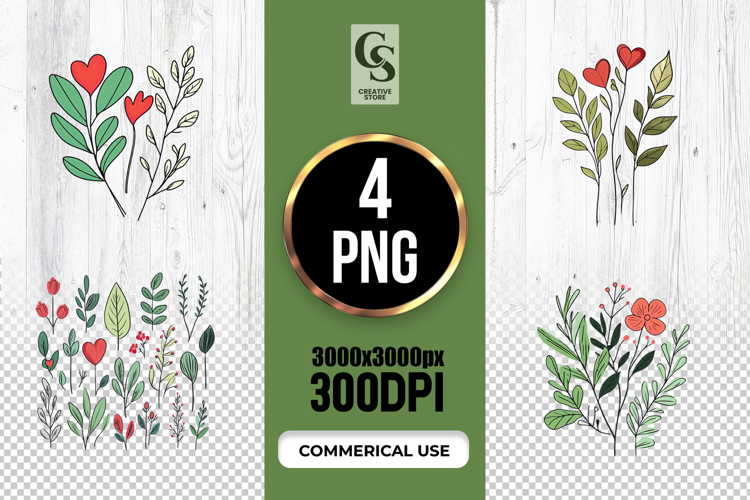 4 Botanical Heart Flower Branch Clipart Sublimation PNG Files Perfect for Greeting Cards, Invitations, Junk Journal, Party Decor, Scrapbooking and many other craft projects.