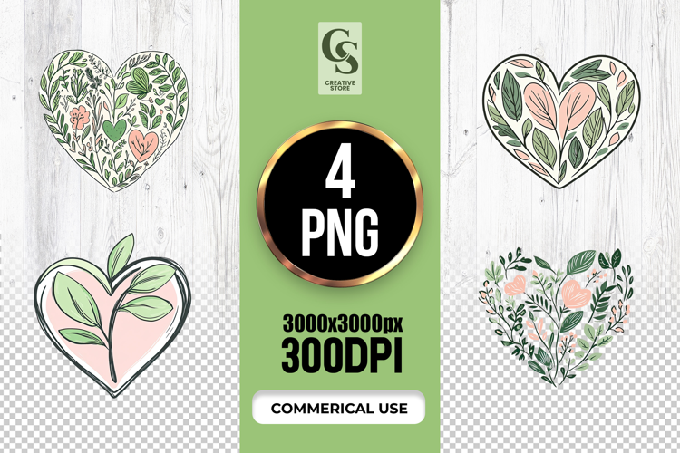 4 Leafy Botanical Heart Clipart Sublimation PNG Files Perfect for Greeting Cards, Invitations, Junk Journal, Party Decor, Scrapbooking and many other craft projects.