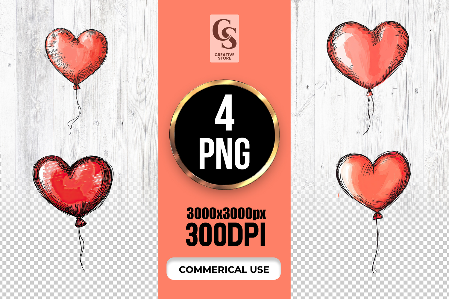 4 Heart Balloon Clipart Sublimation PNG Files Perfect for Greeting Cards, Invitations, Junk Journal, Party Decor, Scrapbooking and many other craft projects.