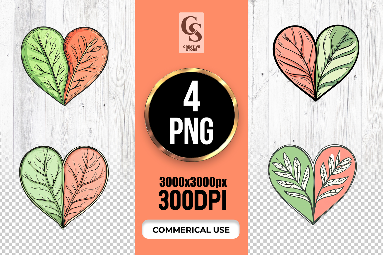 4 Leafy Heart Clipart PNG Files Perfect for Greeting Cards, Invitations, Junk Journal, Party Decor, Scrapbooking and many other craft projects.