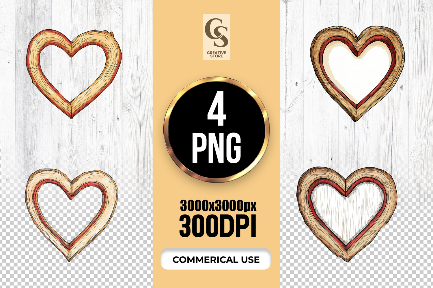4 Rustic Wooden Heart Frame Clipart PNG Files Perfect for Greeting Cards, Invitations, Junk Journal, Party Decor, Scrapbooking and many other craft projects.