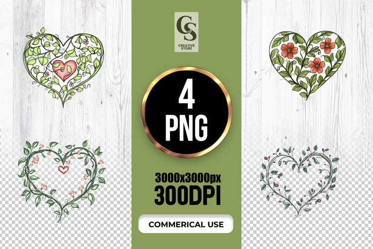 4 Floral Heart Vine Clipart PNG Files Perfect for Greeting Cards, Invitations, Junk Journal, Party Decor, Scrapbooking and many other craft projects.