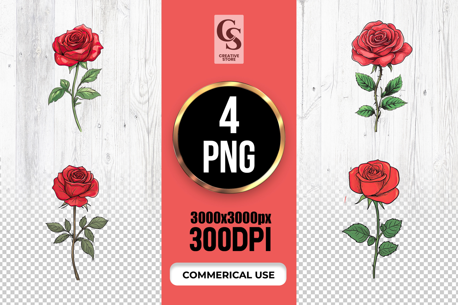 4 Elegant Red Rose Watercolor Clipart Sublimation PNG Files Perfect for Greeting Cards, Invitations, Junk Journal, Party Decor, Scrapbooking and many other craft projects.