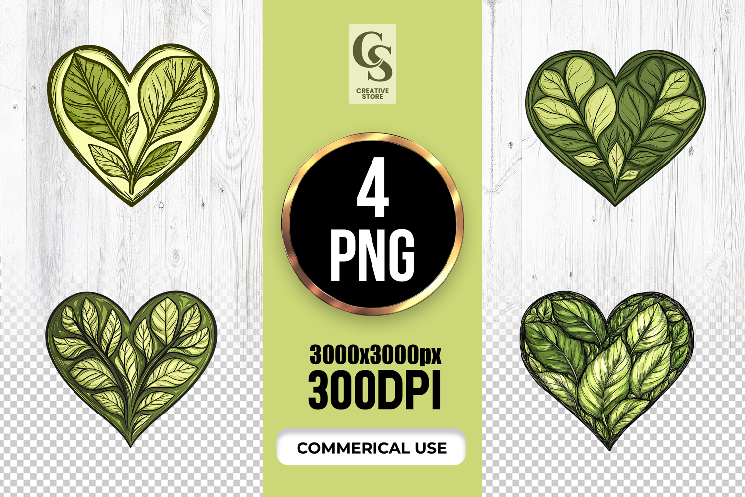 4 Green Leaf Heart Hand Drawn Clipart Sublimation PNG Files Perfect for Greeting Cards, Invitations, Junk Journal, Party Decor, Scrapbooking and many other craft projects.