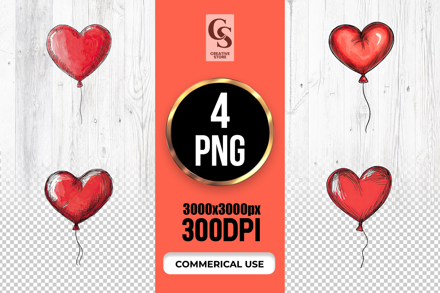 4 Hand Drawn Red Heart Balloon Clipart Sublimation PNG Files Perfect for Greeting Cards, Invitations, Junk Journal, Party Decor, Scrapbooking and many other craft projects.