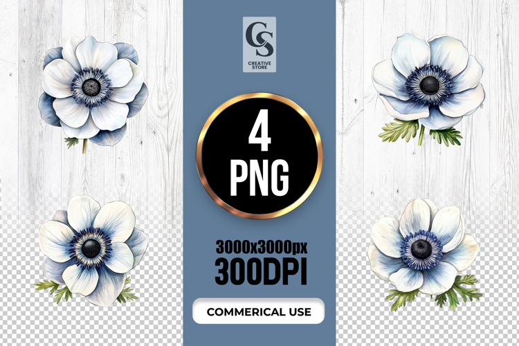 4 White Anemone Flower Illustration Clipart Sublimation PNG Files Perfect for Greeting Cards, Invitations, Junk Journal, Party Decor, Scrapbooking and many other craft projects.