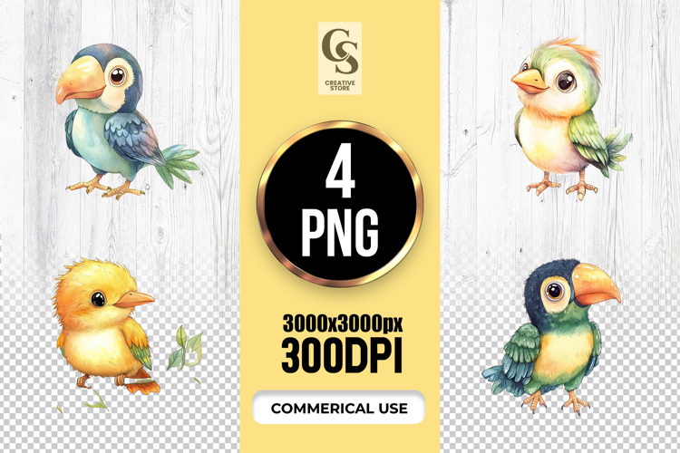 4 Cute Tropical Bird Illustration Clipart Sublimation PNG Files Perfect for Greeting Cards, Invitations, Junk Journal, Party Decor, Scrapbooking and many other craft projects.