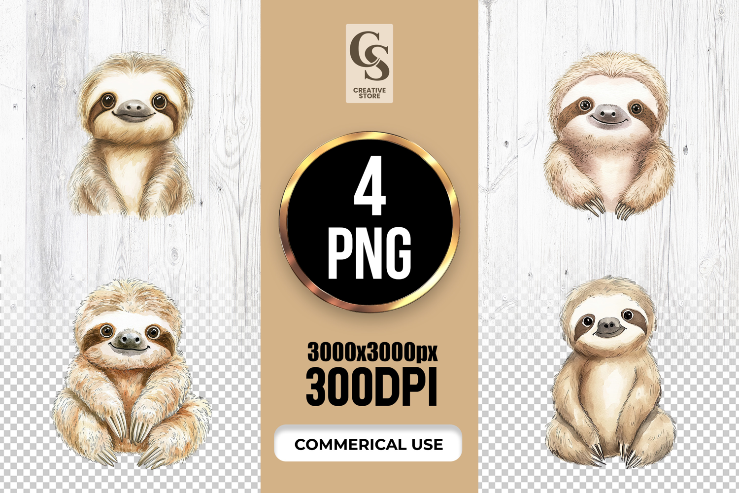 4 Cute Baby Sloth Watercolor Clipart Sublimation PNG Files Perfect for Greeting Cards, Invitations, Junk Journal, Party Decor, Scrapbooking and many other craft projects.