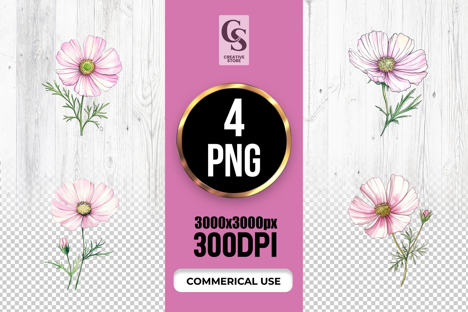 Similar Design Products to Pink Cosmos Flower Watercolor Clipart Sublimation PNG