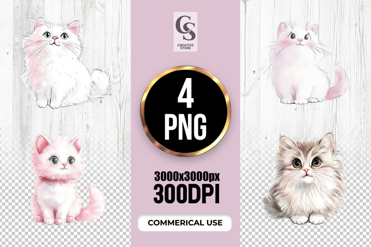 4 Cute Kitten Watercolor Illustration Clipart Sublimation PNG Files Perfect for Greeting Cards, Invitations, Junk Journal, Party Decor, Scrapbooking and many other craft projects.