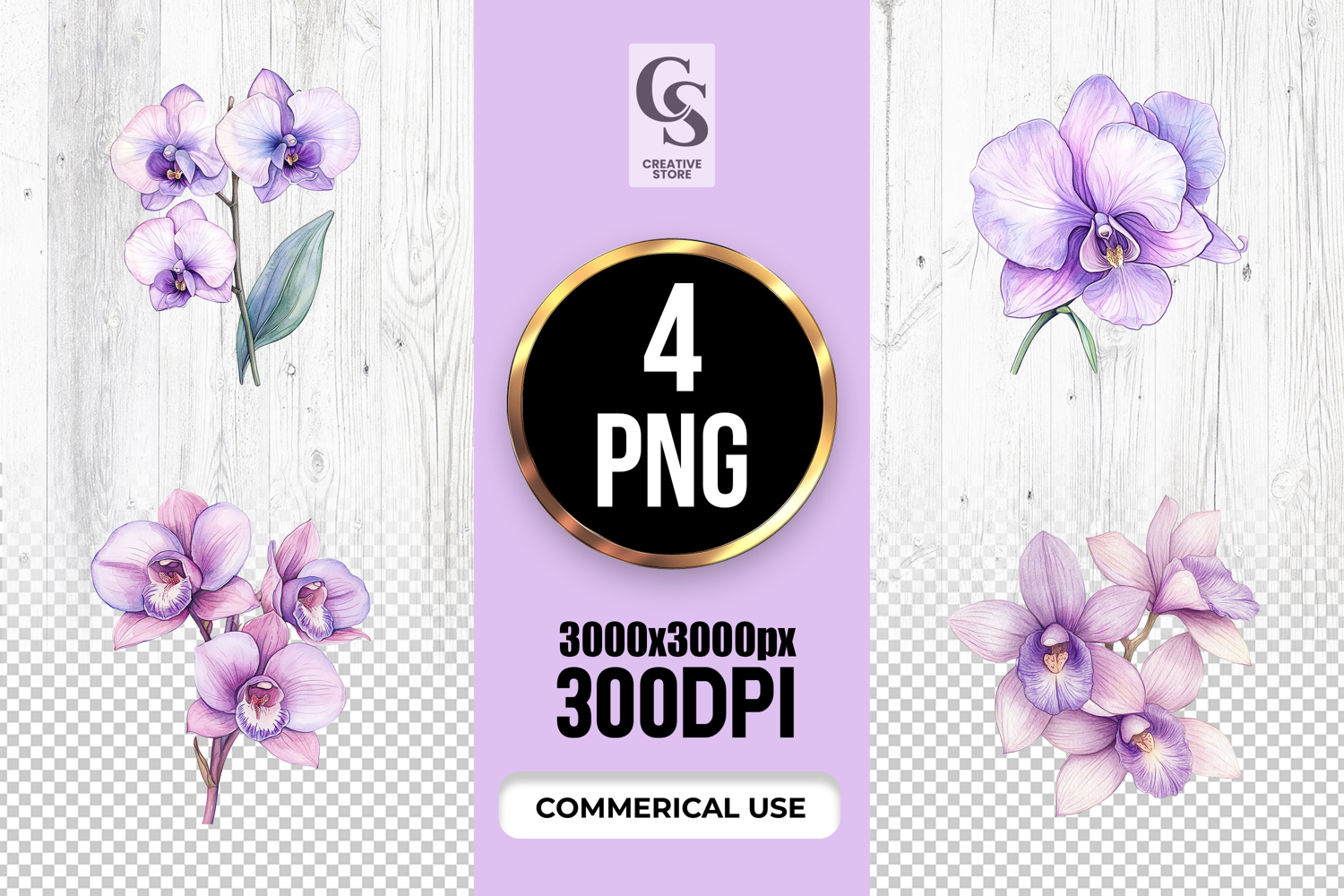 4 Watercolor Orchid Flower Clipart Sublimation PNG Files Perfect for Greeting Cards, Invitations, Junk Journal, Party Decor, Scrapbooking and many other craft projects.