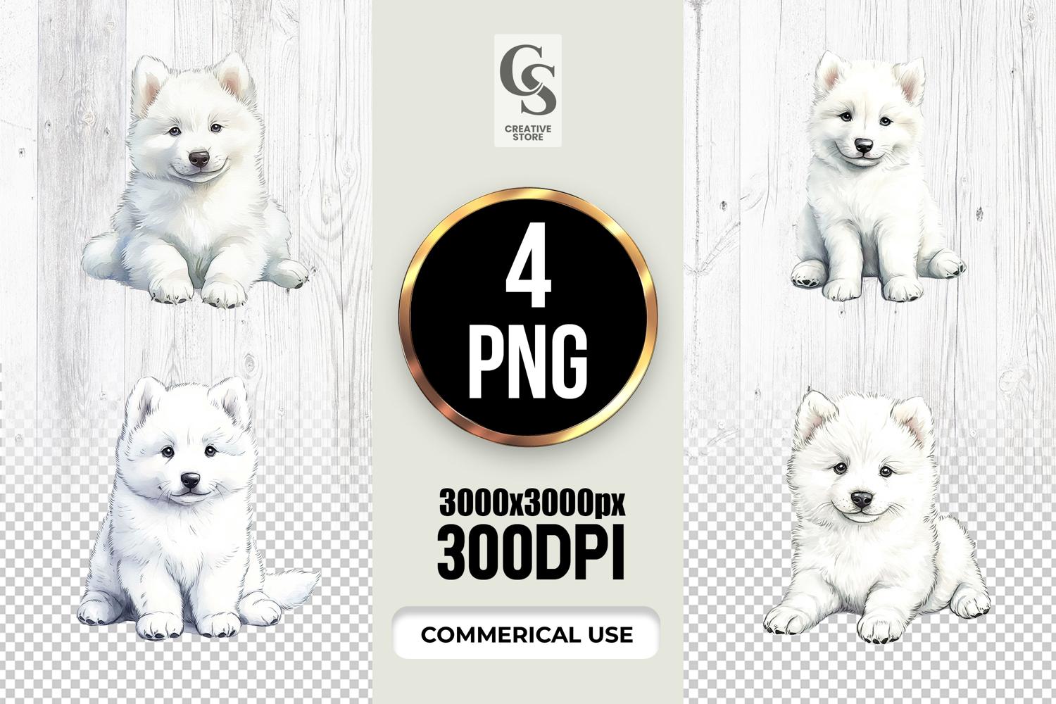 4 Watercolor White Puppy Clipart Sublimation PNG Files Perfect for Greeting Cards, Invitations, Junk Journal, Party Decor, Scrapbooking and many other craft projects.