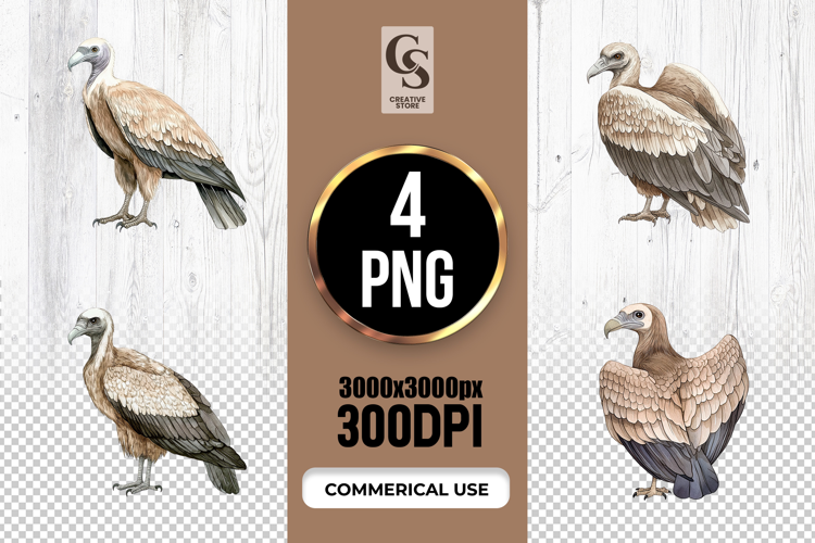 4 Watercolor Vulture Clipart Sublimation PNG Files Perfect for Greeting Cards, Invitations, Junk Journal, Party Decor, Scrapbooking and many other craft projects.