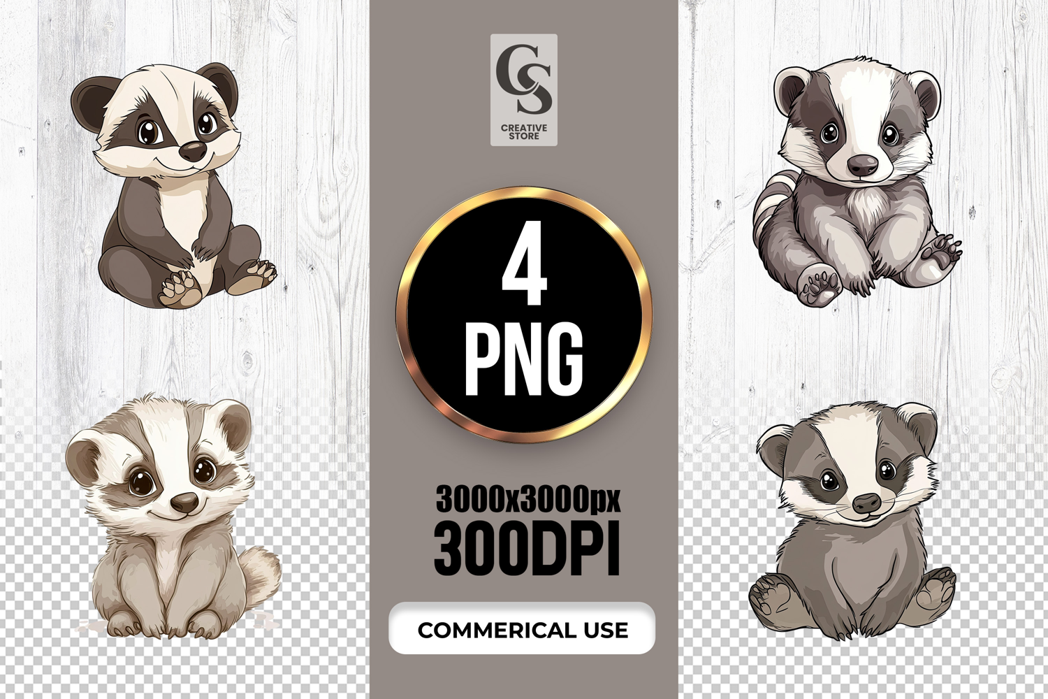 4 Cute Baby Badger Clipart Sublimation PNG Files Perfect for Greeting Cards, Invitations, Junk Journal, Party Decor, Scrapbooking and many other craft projects.