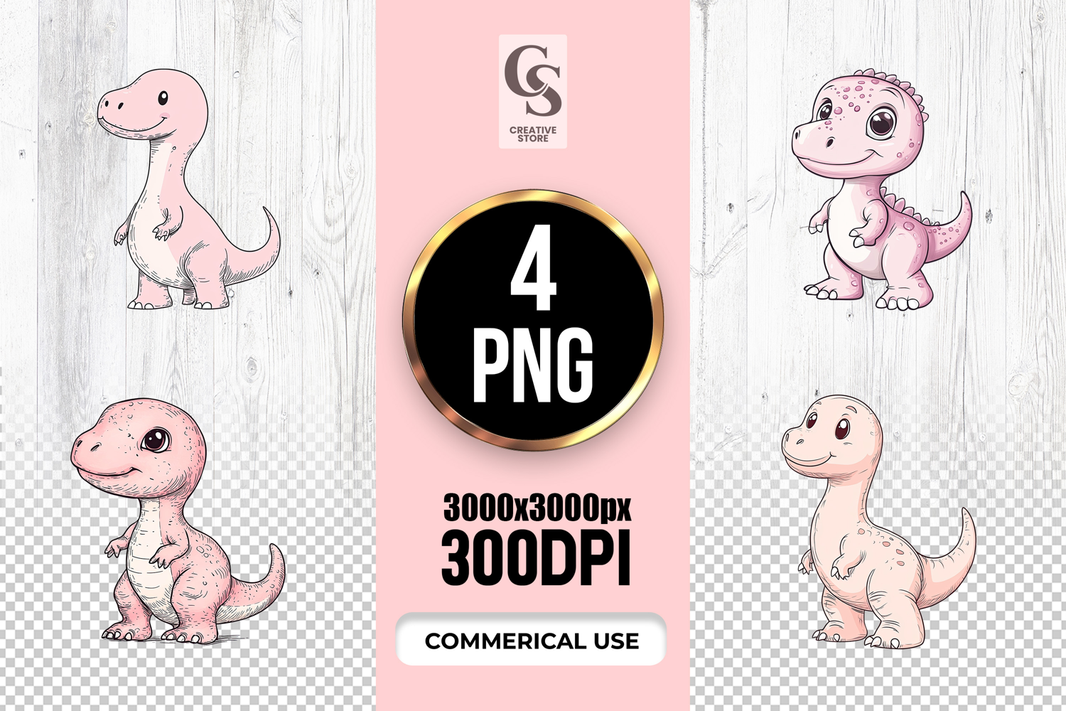 4 Cute Pink Baby Dinosaur Clipart Sublimation PNG Files Perfect for Greeting Cards, Invitations, Junk Journal, Party Decor, Scrapbooking and many other craft projects.