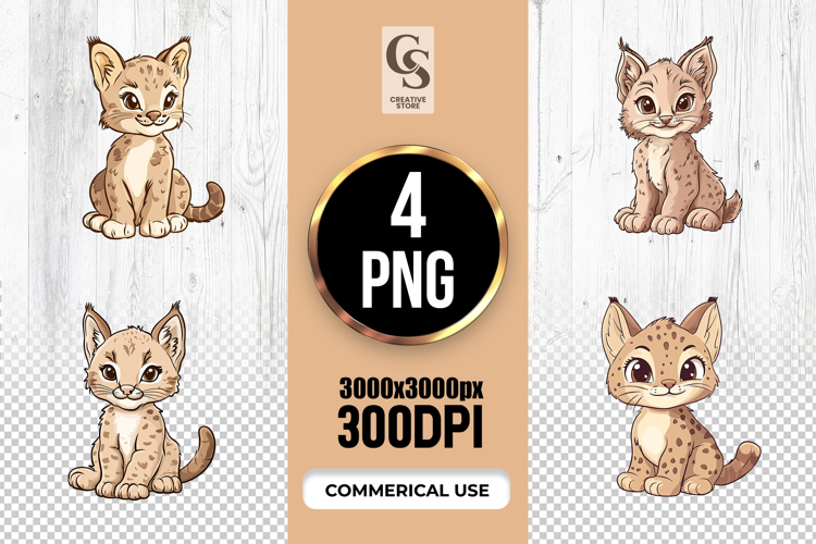 4 Cute Baby Lynx Clipart Sublimation PNG Files Perfect for Greeting Cards, Invitations, Junk Journal, Party Decor, Scrapbooking and many other craft projects.