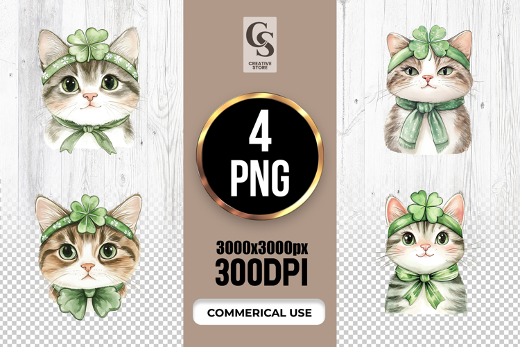 4 Cute Shamrock Bow Cat Clipart Sublimation PNG Files Perfect for Greeting Cards, Invitations, Junk Journal, Party Decor, Scrapbooking and many other craft projects.