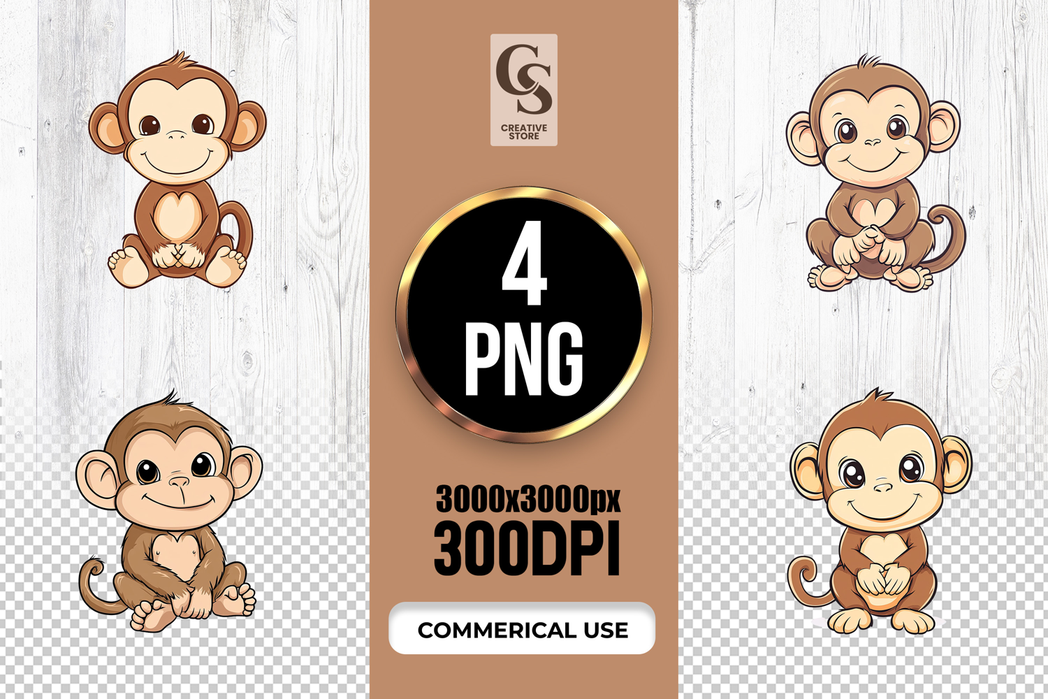 4 Cute Baby Monkey Clipart Sublimation PNG Files Perfect for Greeting Cards, Invitations, Junk Journal, Party Decor, Scrapbooking and many other craft projects.