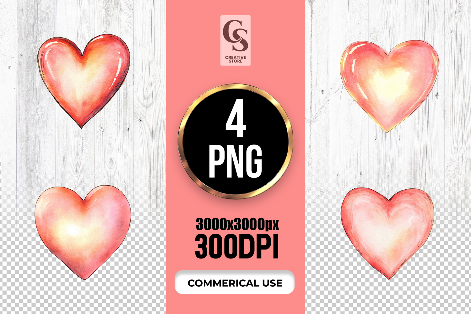 4 Red Watercolor Heart Clipart Sublimation PNG Files Perfect for Greeting Cards, Invitations, Junk Journal, Party Decor, Scrapbooking and many other craft projects.