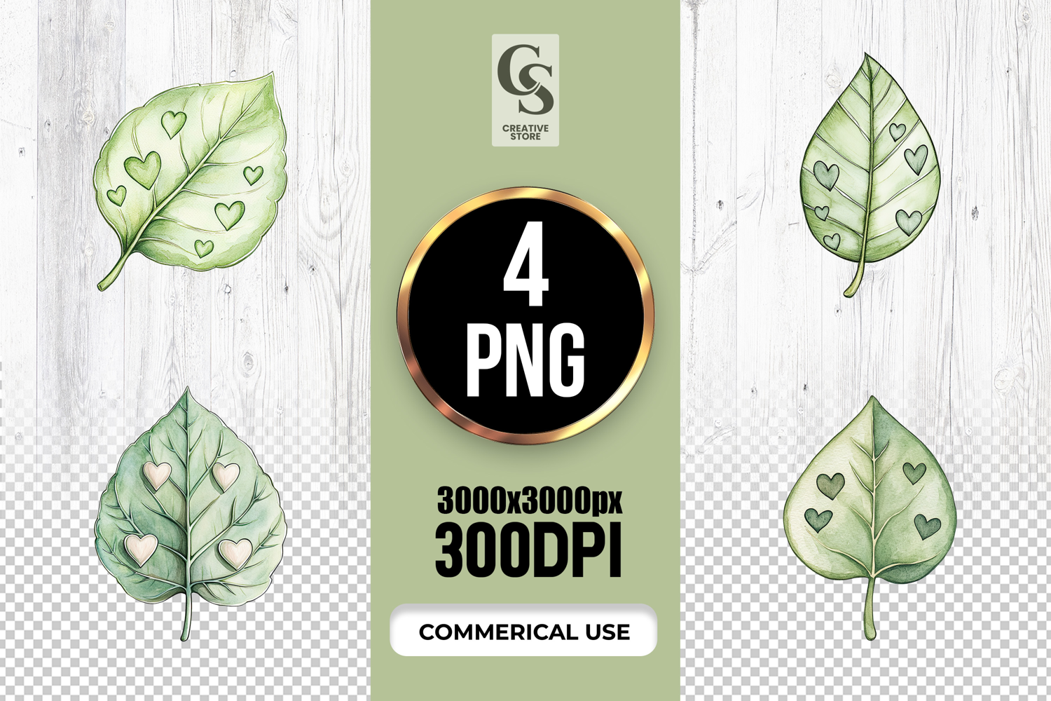 4 Watercolor Heart Leaf Clipart Sublimation PNG Files Perfect for Greeting Cards, Invitations, Junk Journal, Party Decor, Scrapbooking and many other craft projects.