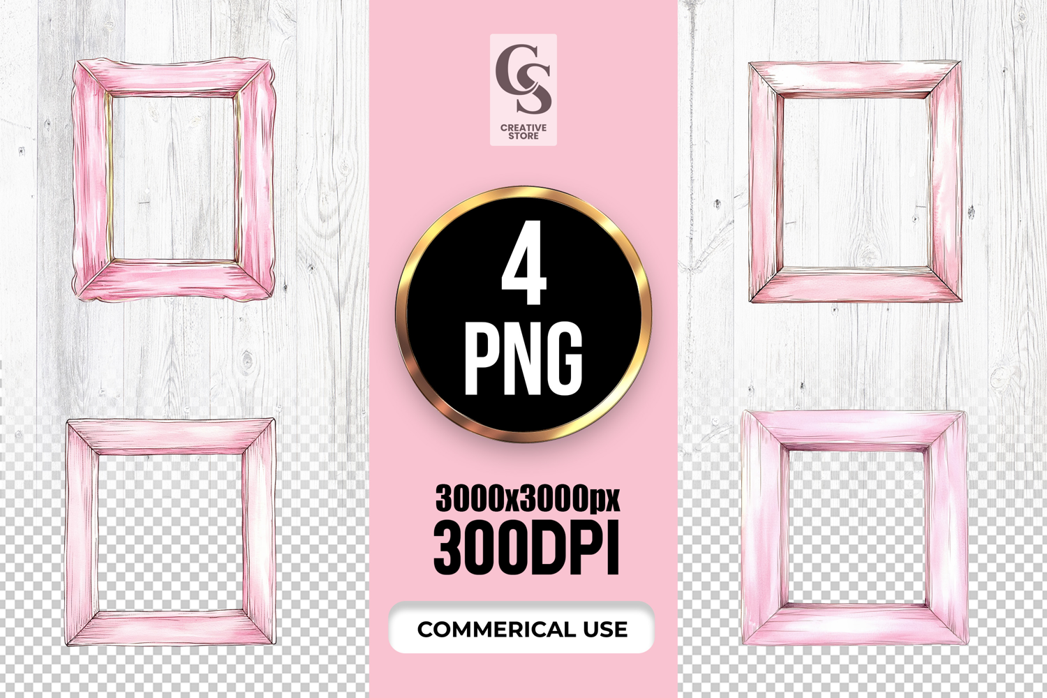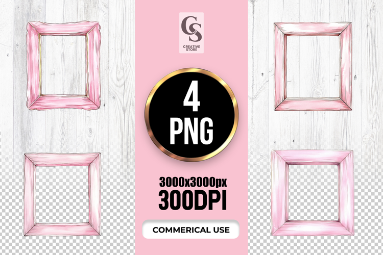 4 Watercolor Pink Frame Clipart Sublimation PNG Files Perfect for Greeting Cards, Invitations, Junk Journal, Party Decor, Scrapbooking and many other craft projects.