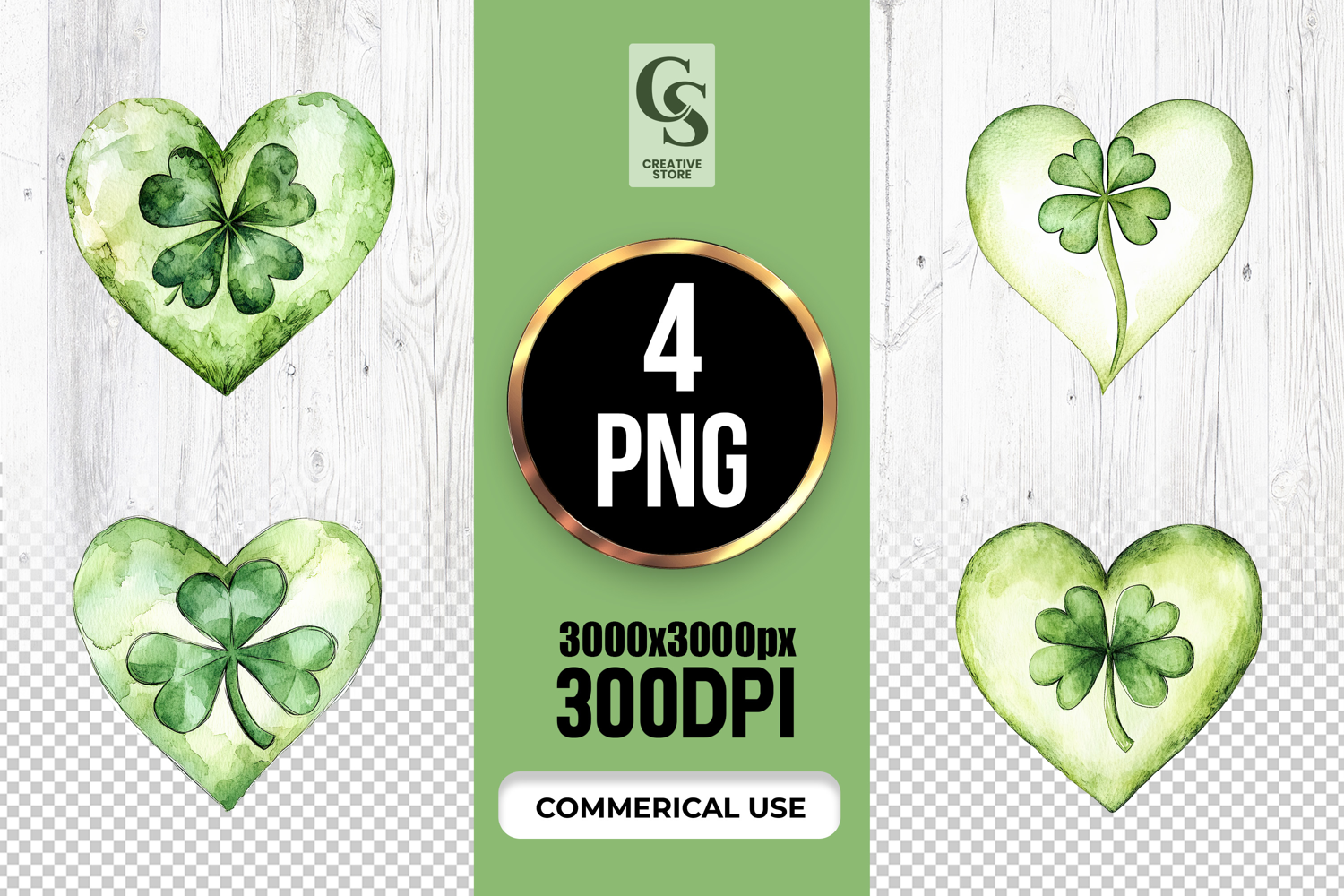 Watercolor Clover Heart Clipart Sublimation PNG example image 1