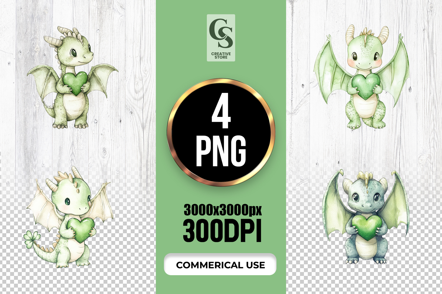 4 Cute Baby Dragon Green Heart Clipart Sublimation PNG Files Perfect for Greeting Cards, Invitations, Junk Journal, Party Decor, Scrapbooking and many other craft projects.