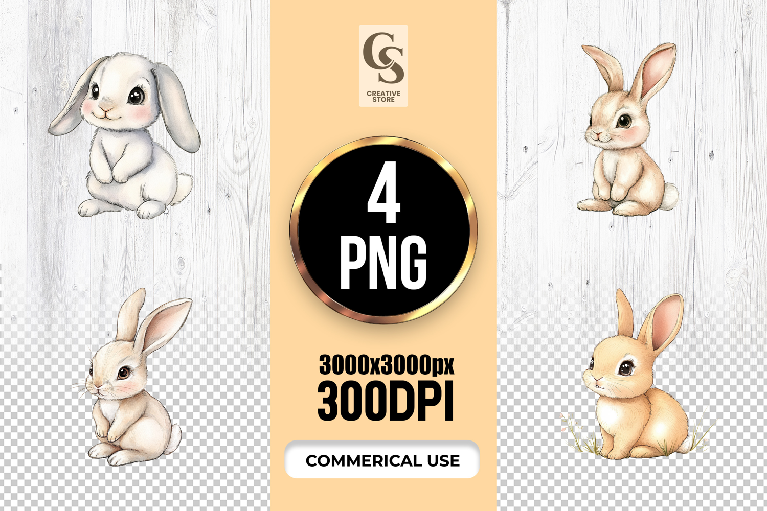 4 Cute Baby Bunny Clipart Sublimation PNG Files Perfect for Greeting Cards, Invitations, Junk Journal, Party Decor, Scrapbooking and many other craft projects.