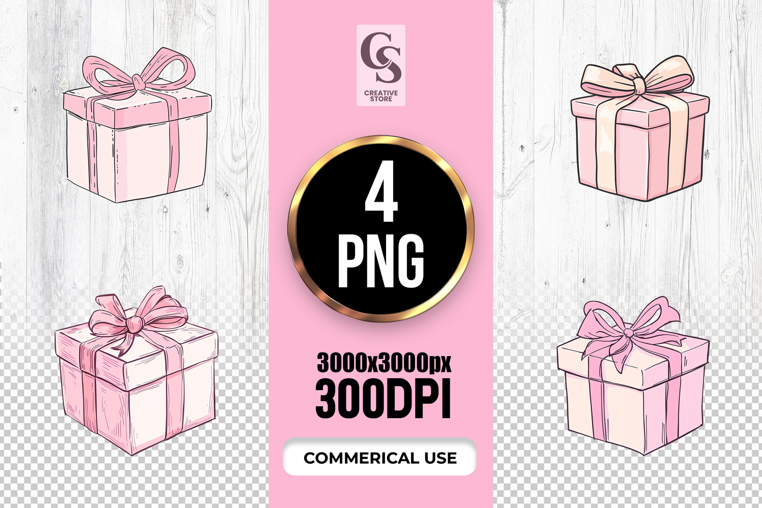 Pink Gift Box Clipart Sublimation PNG example image 1