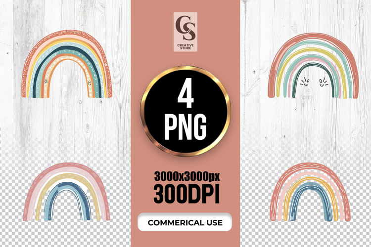 4 Boho Pastel Rainbow Clipart Sublimation PNG Files Perfect for Greeting Cards, Invitations, Junk Journal, Party Decor, Scrapbooking and many other craft projects.