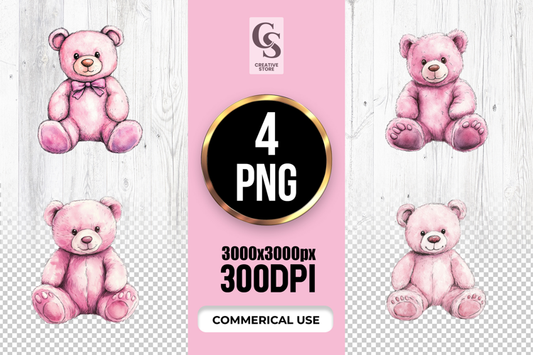4 Cute Pink Teddy Bear with Bow Clipart Sublimation PNG Files Perfect for Greeting Cards, Invitations, Junk Journal, Party Decor, Scrapbooking and many other craft projects.