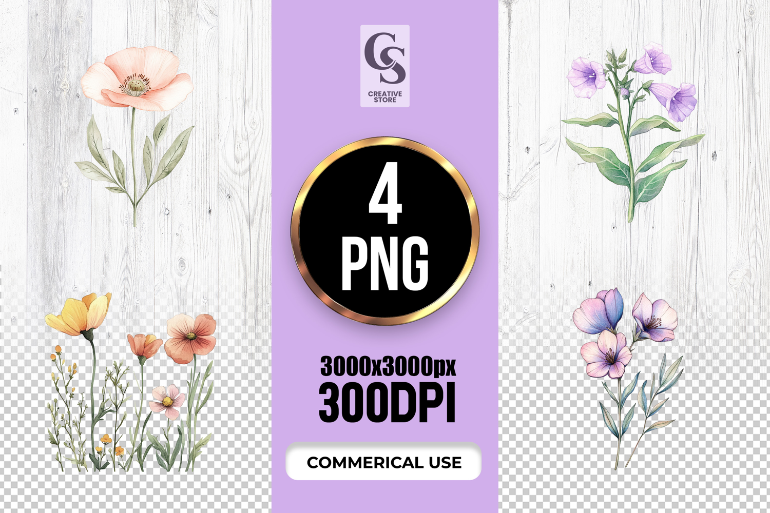4 Pink Wildflower Watercolor Floral Clipart Sublimation PNG Files Perfect for Greeting Cards, Invitations, Junk Journal, Party Decor, Scrapbooking and many other craft projects.