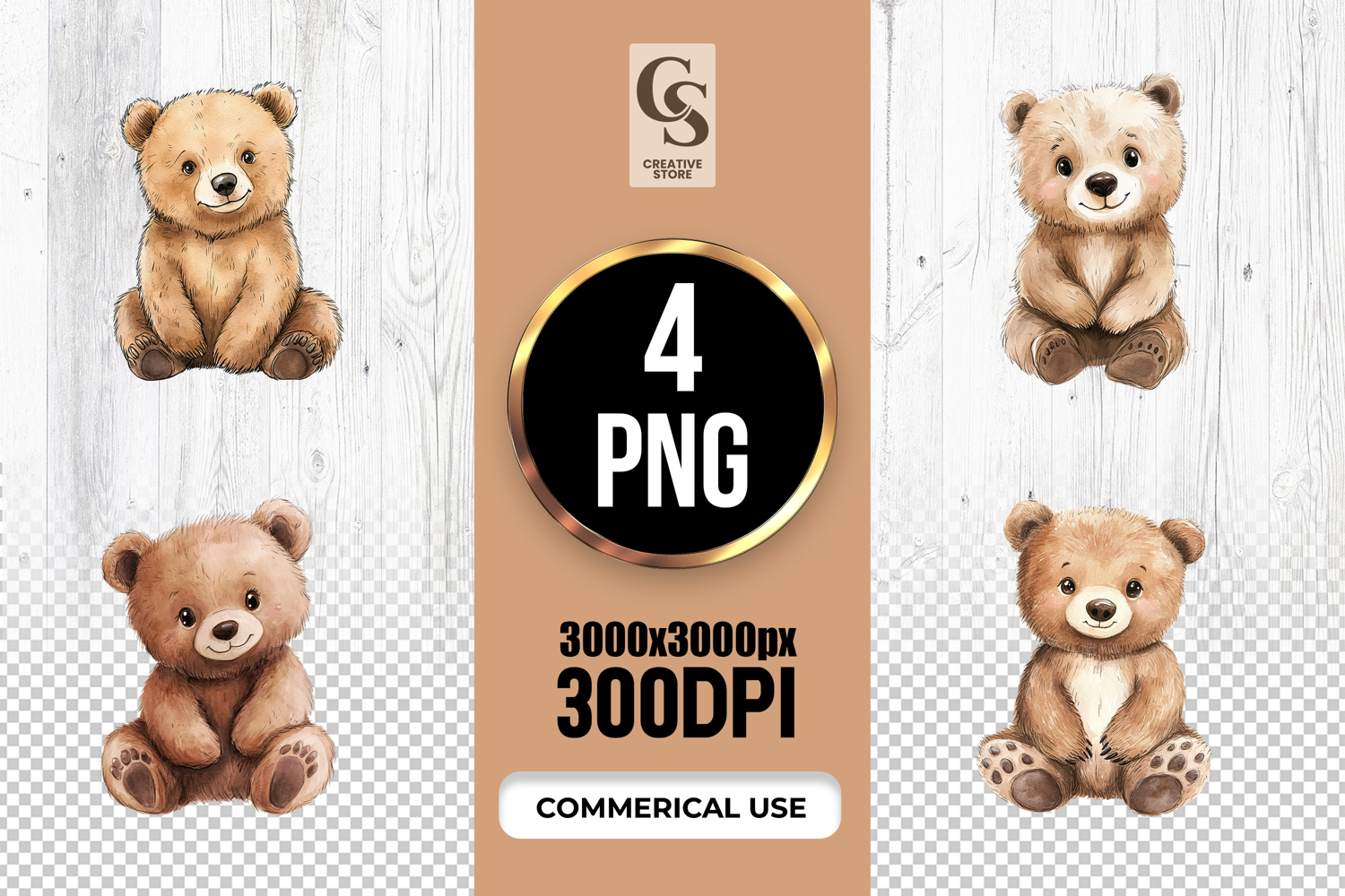 4 Cute Baby Bear Watercolor Clipart Sublimation PNG Files Perfect for Greeting Cards, Invitations, Junk Journal, Party Decor, Scrapbooking and many other craft projects.