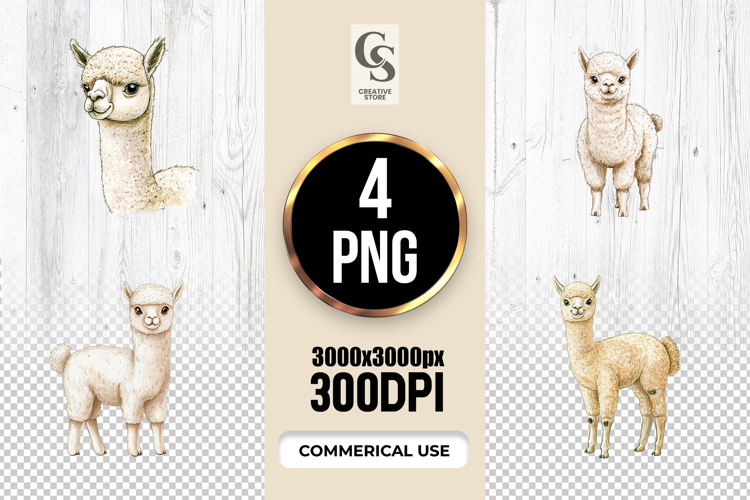 4 Cute Baby Alpaca Watercolor Clipart Sublimation PNG Files Perfect for Greeting Cards, Invitations, Junk Journal, Party Decor, Scrapbooking and many other craft projects.