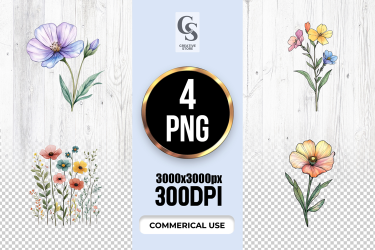 4 Watercolor Floral Wreath Clipart Sublimation PNG Files Perfect for Greeting Cards, Invitations, Junk Journal, Party Decor, Scrapbooking and many other craft projects.