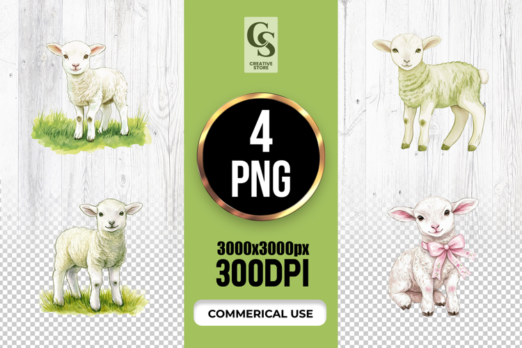 4 Watercolor Baby Lamb Pink Bow Clipart Sublimation PNG Files Perfect for Greeting Cards, Invitations, Junk Journal, Party Decor, Scrapbooking and many other craft projects.
