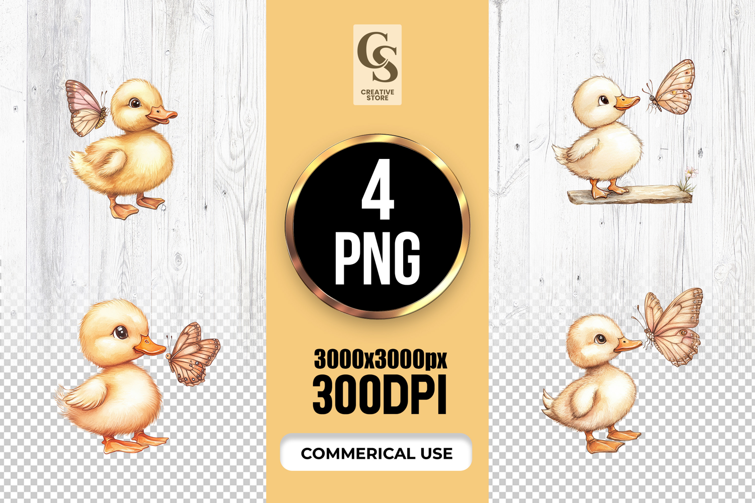4 Watercolor Duckling with Butterfly Clipart Sublimation PNG Files Perfect for Greeting Cards, Invitations, Junk Journal, Party Decor, Scrapbooking and many other craft projects.