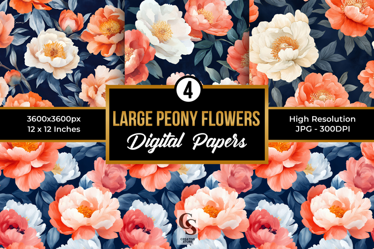 Large Peony Flowers Digital Papers