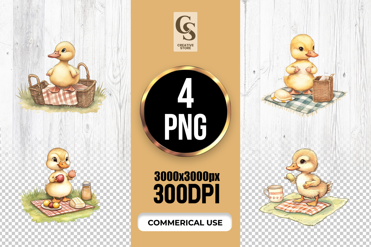 4 Watercolor Picnic Duckling Clipart Sublimation PNG Files Perfect for Greeting Cards, Invitations, Junk Journal, Party Decor, Scrapbooking and many other craft projects.