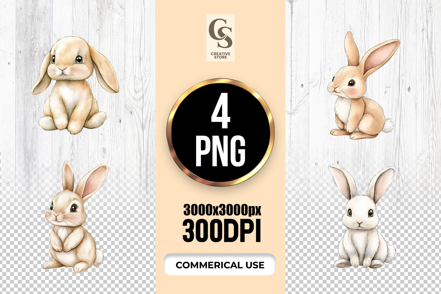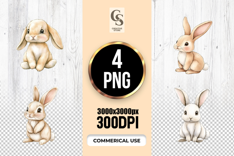 4 Watercolor Bunny with Wildflowers Clipart Sublimation PNG Files Perfect for Greeting Cards, Invitations, Junk Journal, Party Decor, Scrapbooking and many other craft projects.