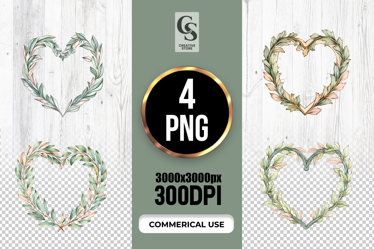 4 Watercolor Leaf Heart Frame Clipart Sublimation PNG Files Perfect for Greeting Cards, Invitations, Junk Journal, Party Decor, Scrapbooking and many other craft projects.